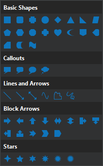 The very first step to creating any game is preparing resources. They are necessary materials to build the game. Shapes Matching Game requires some vivid background images. For example, a grassland background behind a house, or an ocean below a boat. Collect background images as much as you want. For shapes, they are available in the app. Navigate to the Insert tab > Shapes to choose what you need.