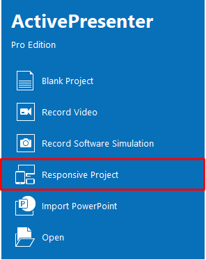- Launch ActivePresenter, and select Responsive Project on the Start Page: