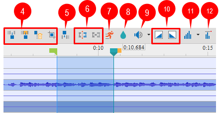(9) Adjust Volume: Increase or decrease the volume for the whole audio/video or just some parts of it.