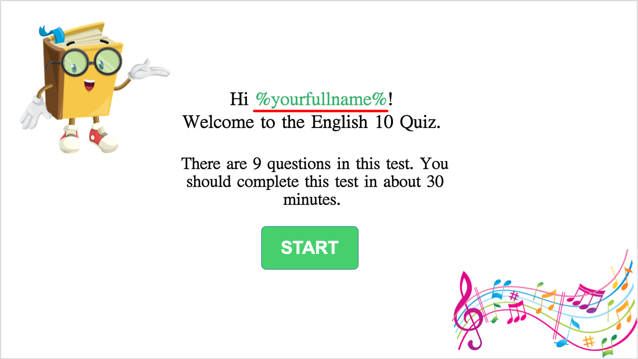 The variable reference appears in your text as a placeholder that contains the variable name getting enclosed within two percent signs (%). When you preview or publish your project to HTML5, ActivePresenter replaces the variable names with the actual values of the variables they reference.