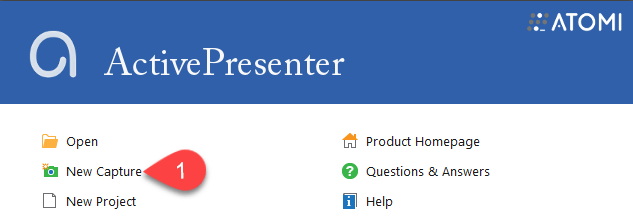 After launching ActivePresenter app, you will see the Welcome Screen presented. Take following steps: